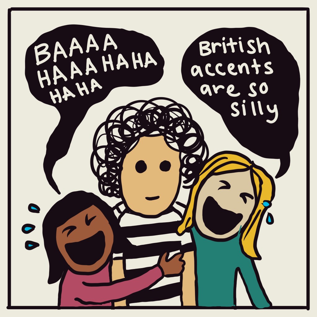 This is an excellent way to insert yourself into a conversation. It works because British accents are funny — everyone thinks so — and they’re easy to imitate.