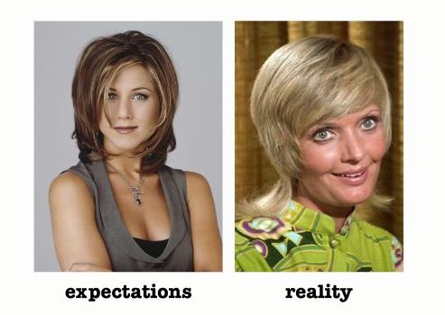 I’m reminded of a time in 1996, when I requested my hairdresser cut me a Rachel. “The Rachel” was a popular hairdo from the hit TV program Friends. Jen Aniston’s Rachel wore her hair in a bitsy, piecey dark-blonde mushroom, with little kicky bits at the bottom: an ugly hairdo, truthfully, and one which only worked on the titular Rachel because Jen Aniston is a babe.
